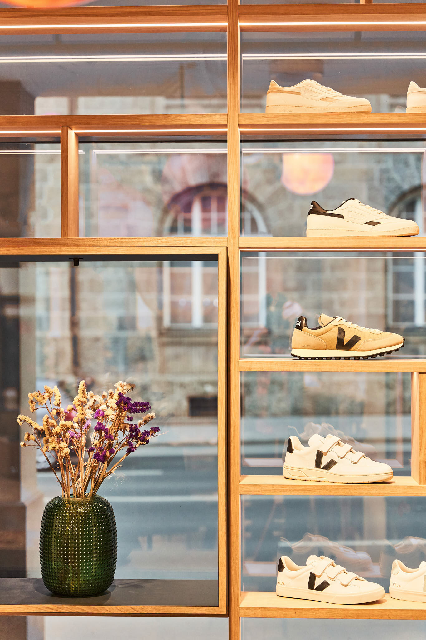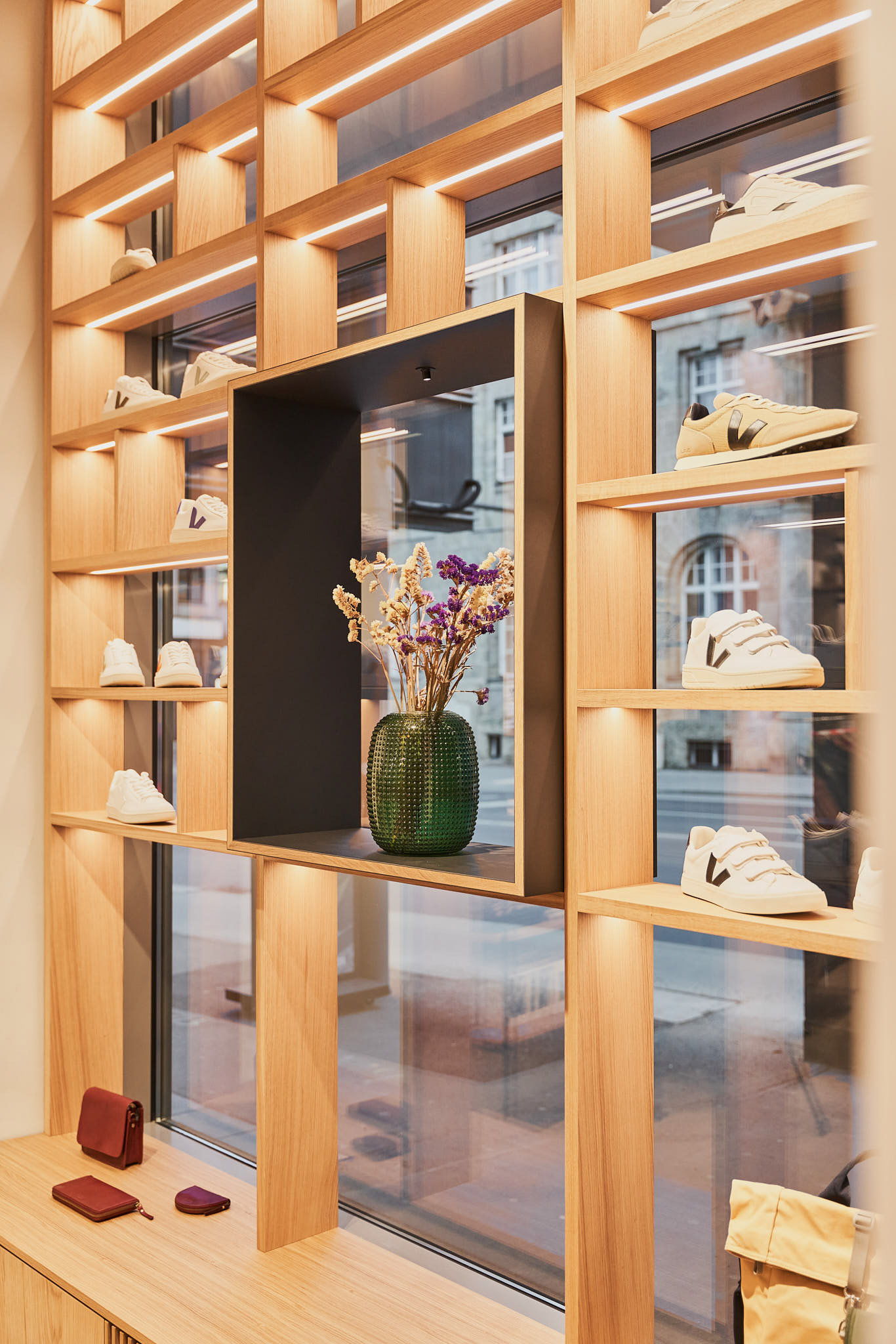 Ein neuesSchaufenster Regal in Eichenholz